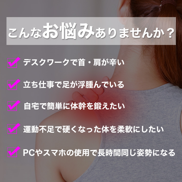 毎日のデスクワークや立ち仕事など、硬くなった身体を柔軟にしてくれます。