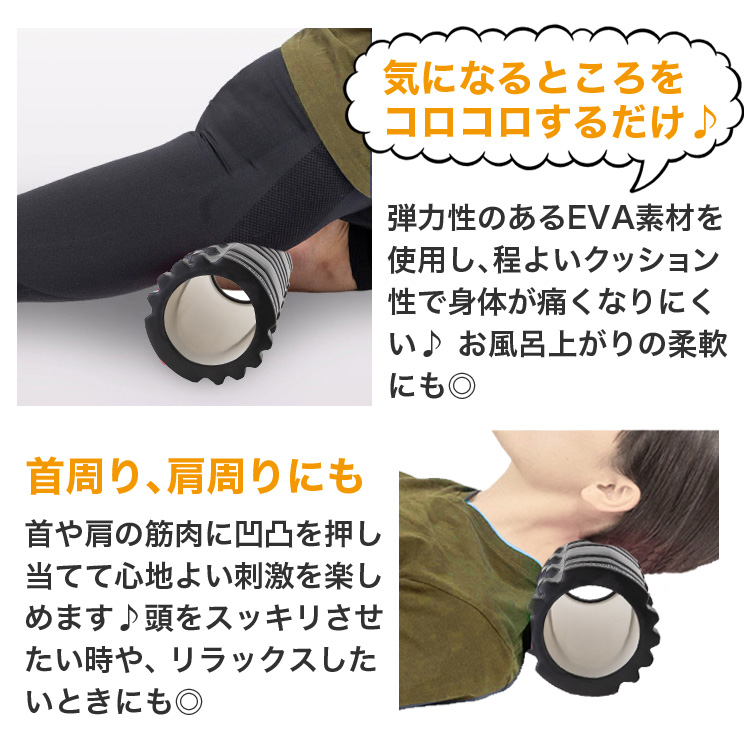 首や肩など、気になるところをコロコロするだけで効果を実感することができます。